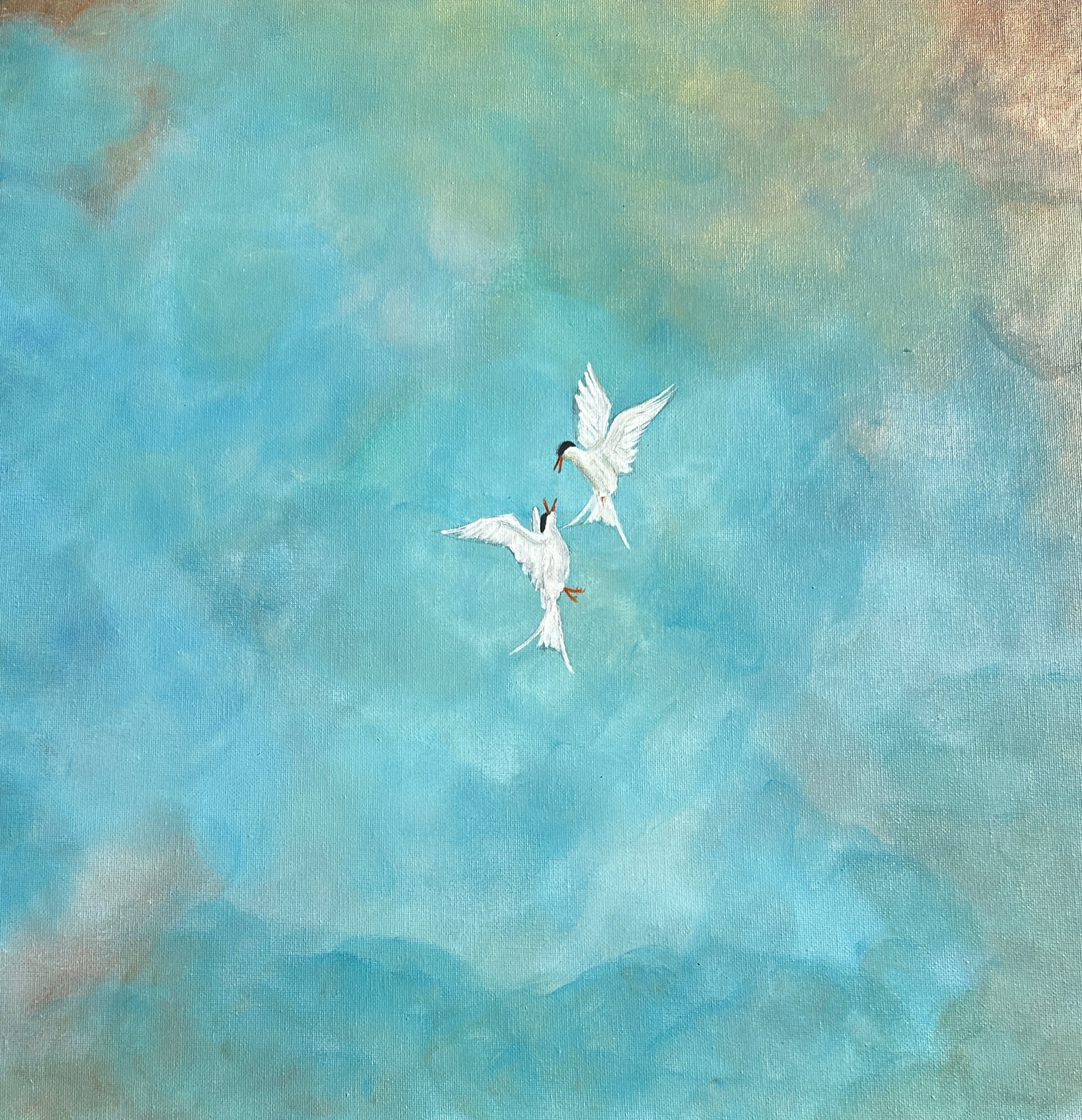 A delicate yet powerful moment captured in motion — two arctic terns mid-flight, caught in a graceful clash above a softly shifting sky. “Aerial Battle” blends atmosphere, stillness, and movement, inviting the viewer into a quiet drama in nature.