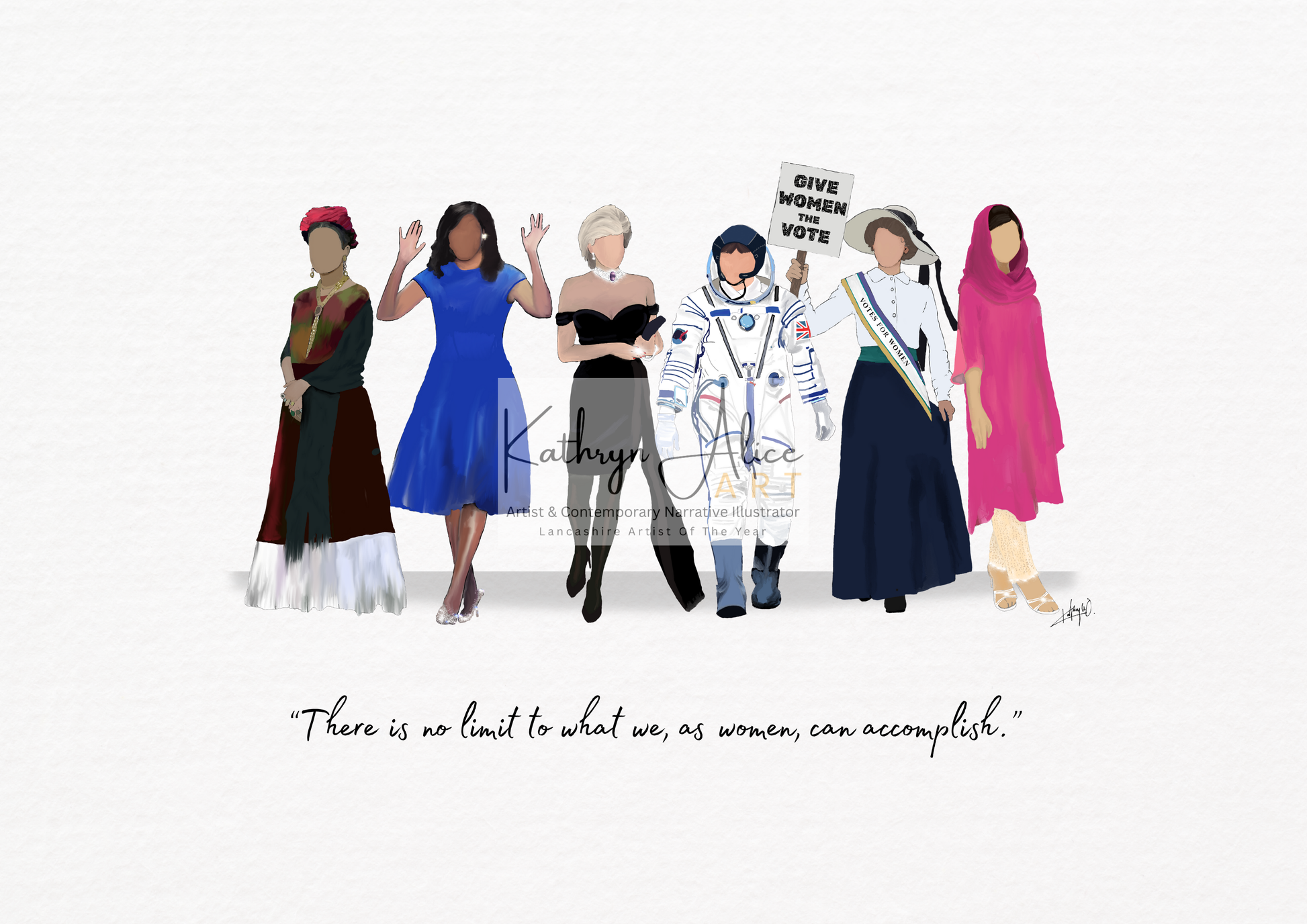 An empowering celebration of iconic women throughout history — from activists and astronauts to artists and changemakers. This digitally painted illustration honours the spirit, strength, and style of trailblazing women who continue to inspire generations.