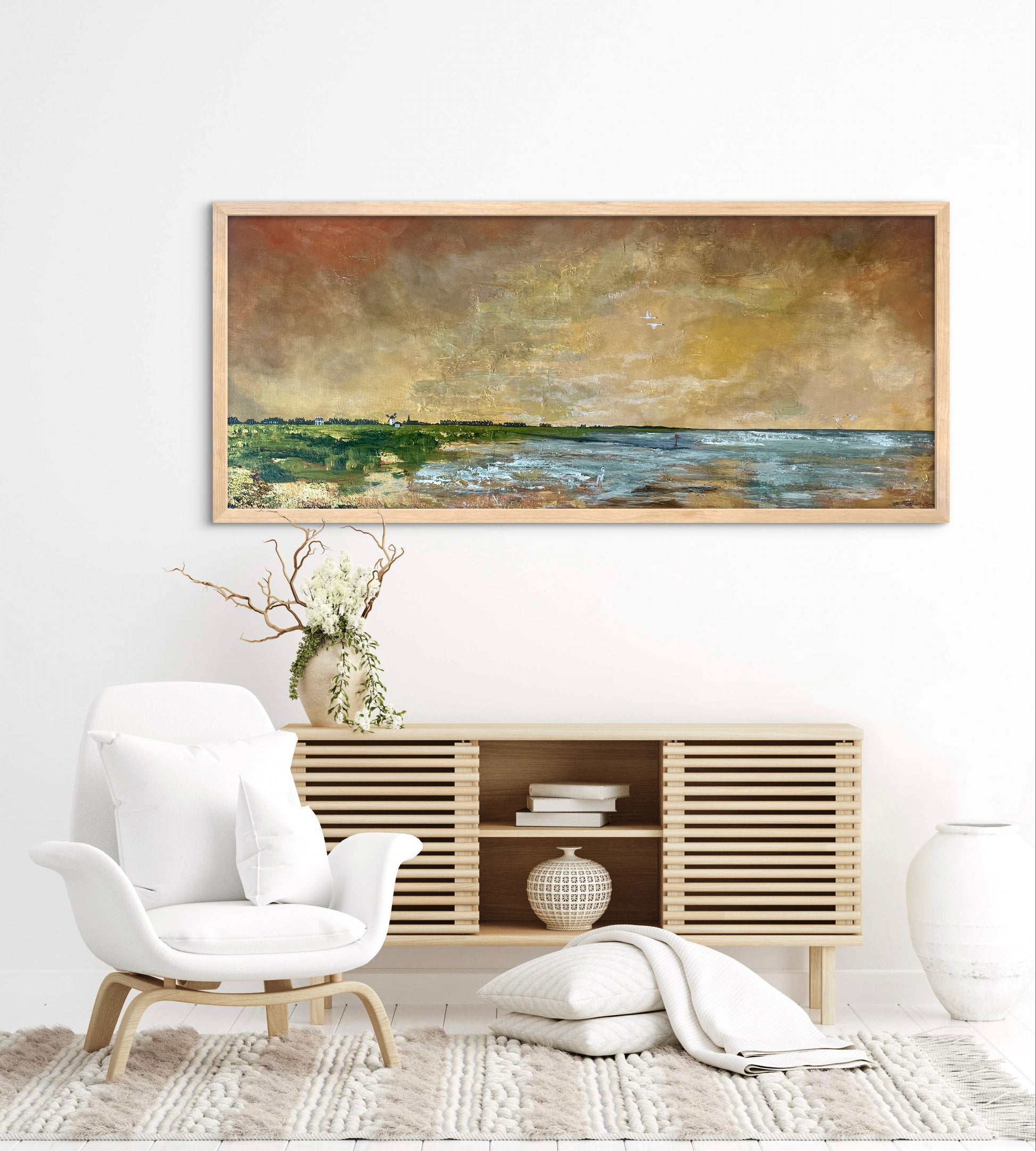 A luminous, expressive piece that captures the golden warmth of light breaking through a textured landscape. With shimmering 24k gold leaf and layered acrylics, Golden Moment celebrates nature’s quiet radiance—an uplifting statement artwork that glows in every light.