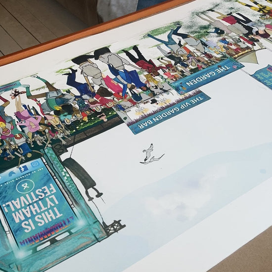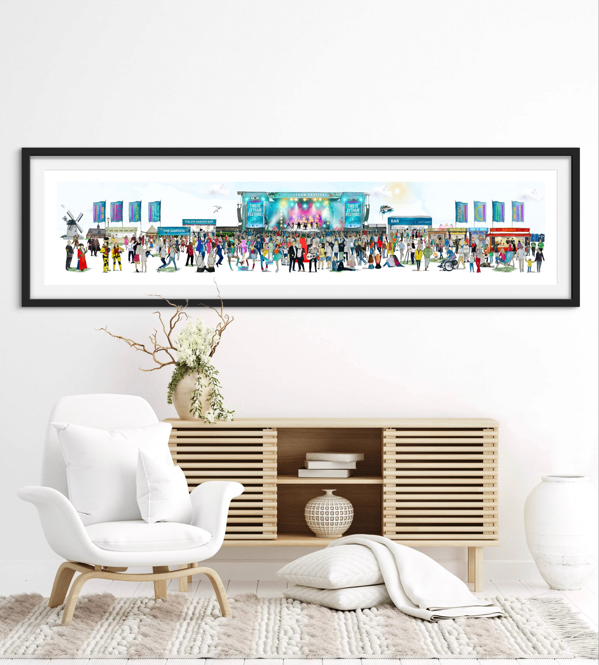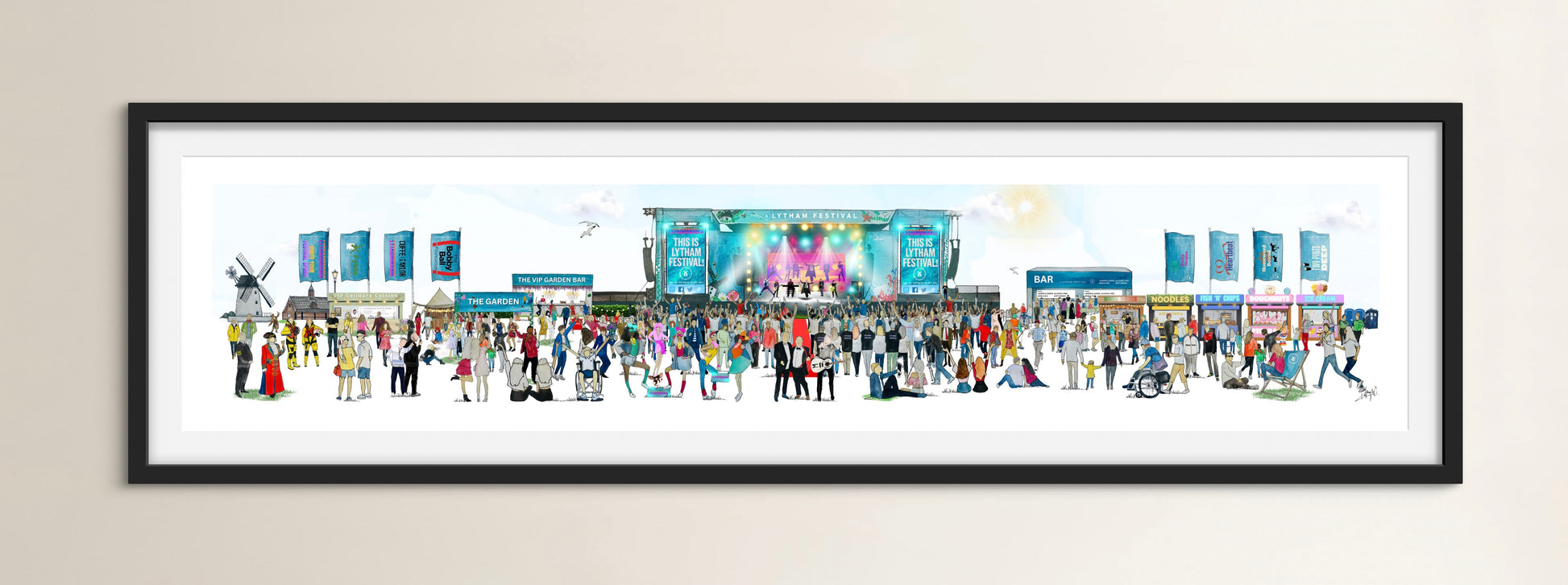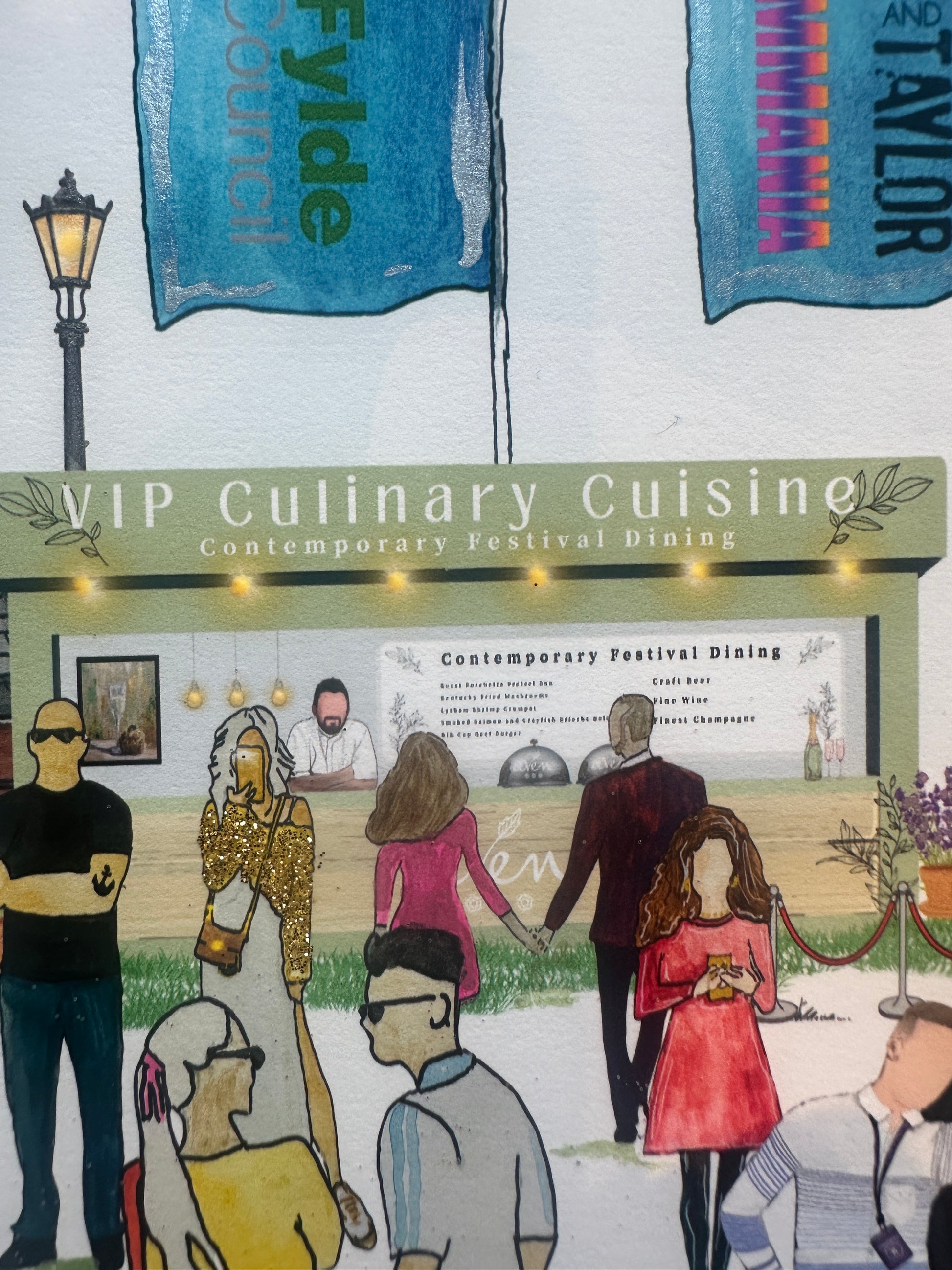Lytham Festiverse is my own personal take on the festival experience – a sister piece to the official artwork I created for the 2025 Lytham Festival fencing, but this time with a full dose of Kathryn-style imagination.